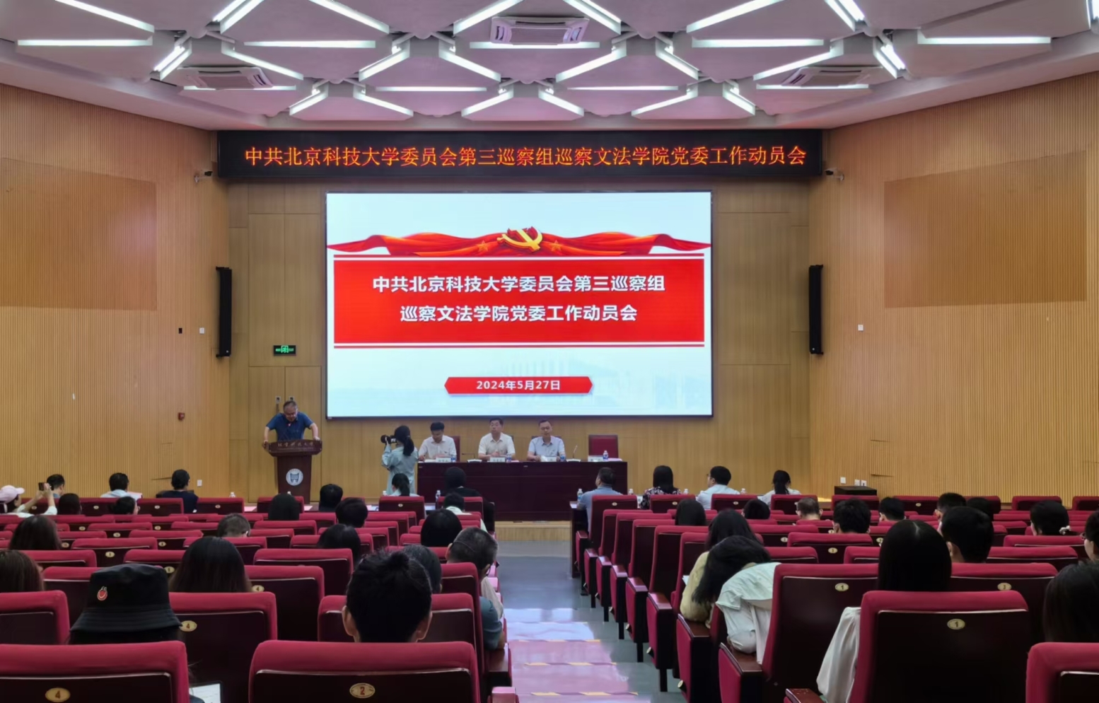 按照学校党委关于巡察工作的统一部署, 5月27日,中共2138cc太阳集团委员会第三巡察组巡察2138CC太阳集团党委工作动员会在学术报告厅顺利召开。学校党委副书记孙景宏,第三巡察组组长苏栋,巡察工作办公室主任杜伟,第三巡察组成员、巡察办成员,2138CC太阳集团党委领导班子成员、党支部书记、系(所、中心)主任、中青年教师代表,离退休人员代表、学生代表等100余人参加动员大会。会议由文法学院常务副院长魏增产主持。